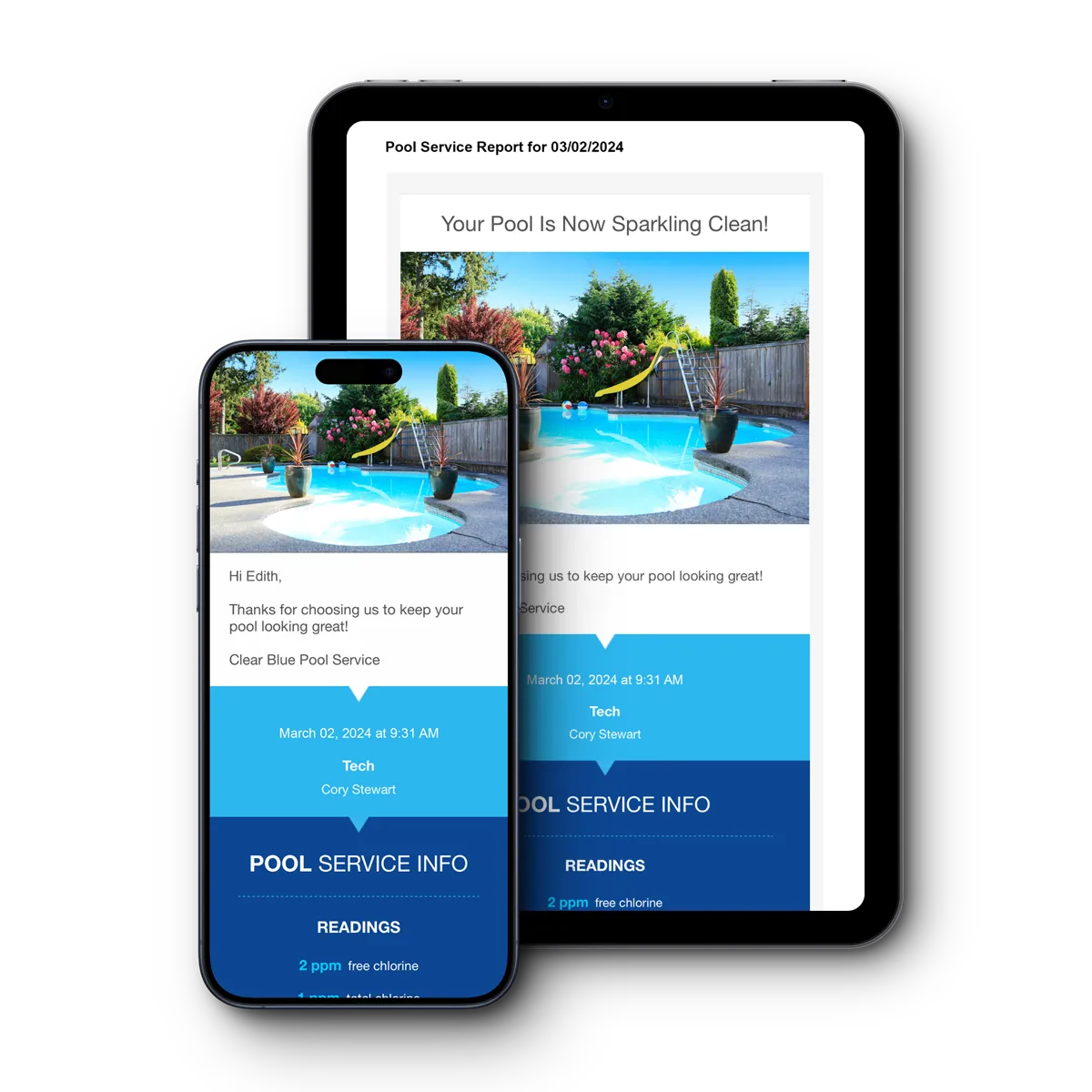 You'll get an email with the photos and a detailed report of everything we did so your never left wondering about the care your pool received